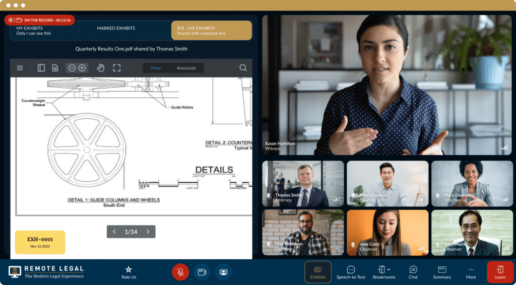 Allow participants to view, control, interact, and annotate exhibits at their own pace on their own screen, as if it were a courtesy copy – a more natural experience compared to fixed screen shares.