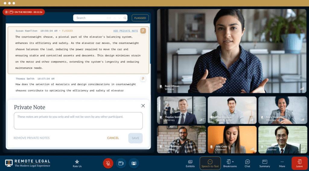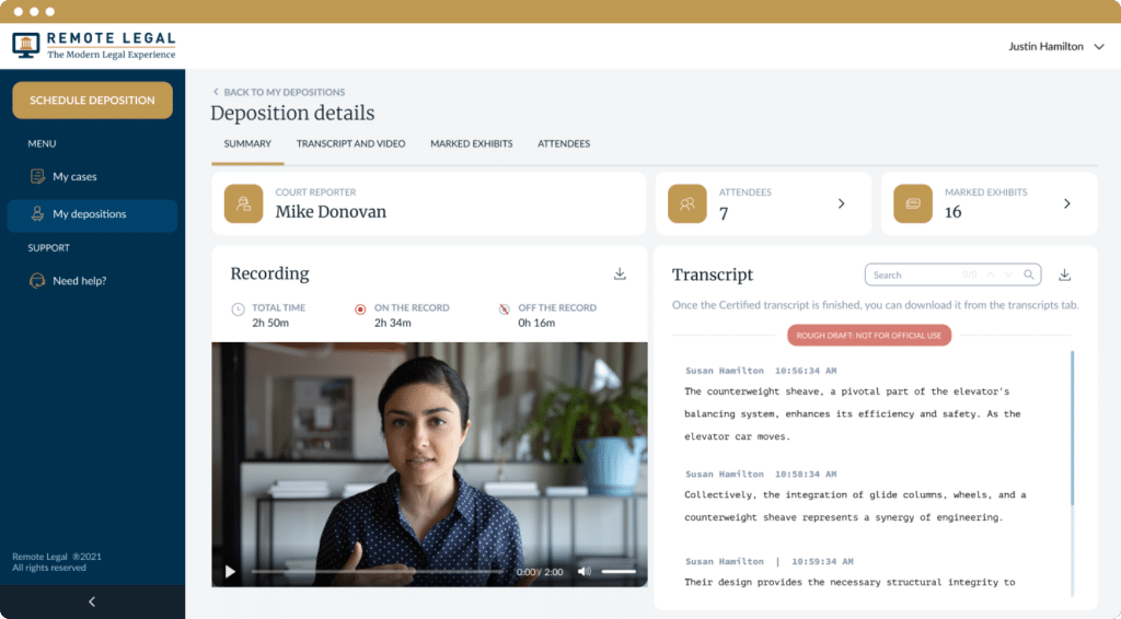 Download the rough transcript synced to the witness-only video just hours after the proceeding is over, accessing it anytime from the cloud.
