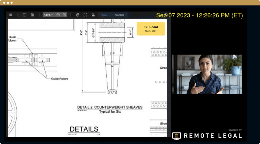Focus simultaneously on two critical elements of the deposition, the witness and the exhibit.